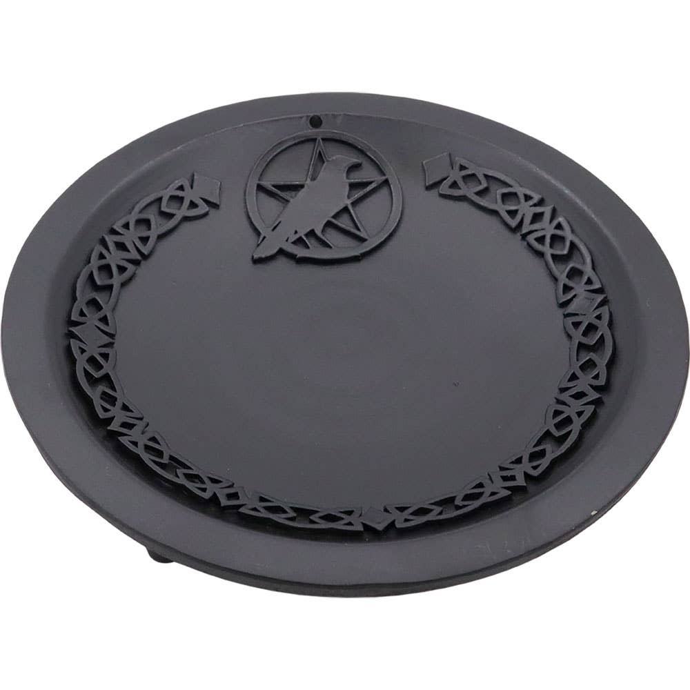 Cast Iron Offering Plate Incense Holder - Pentacle w/ Raven