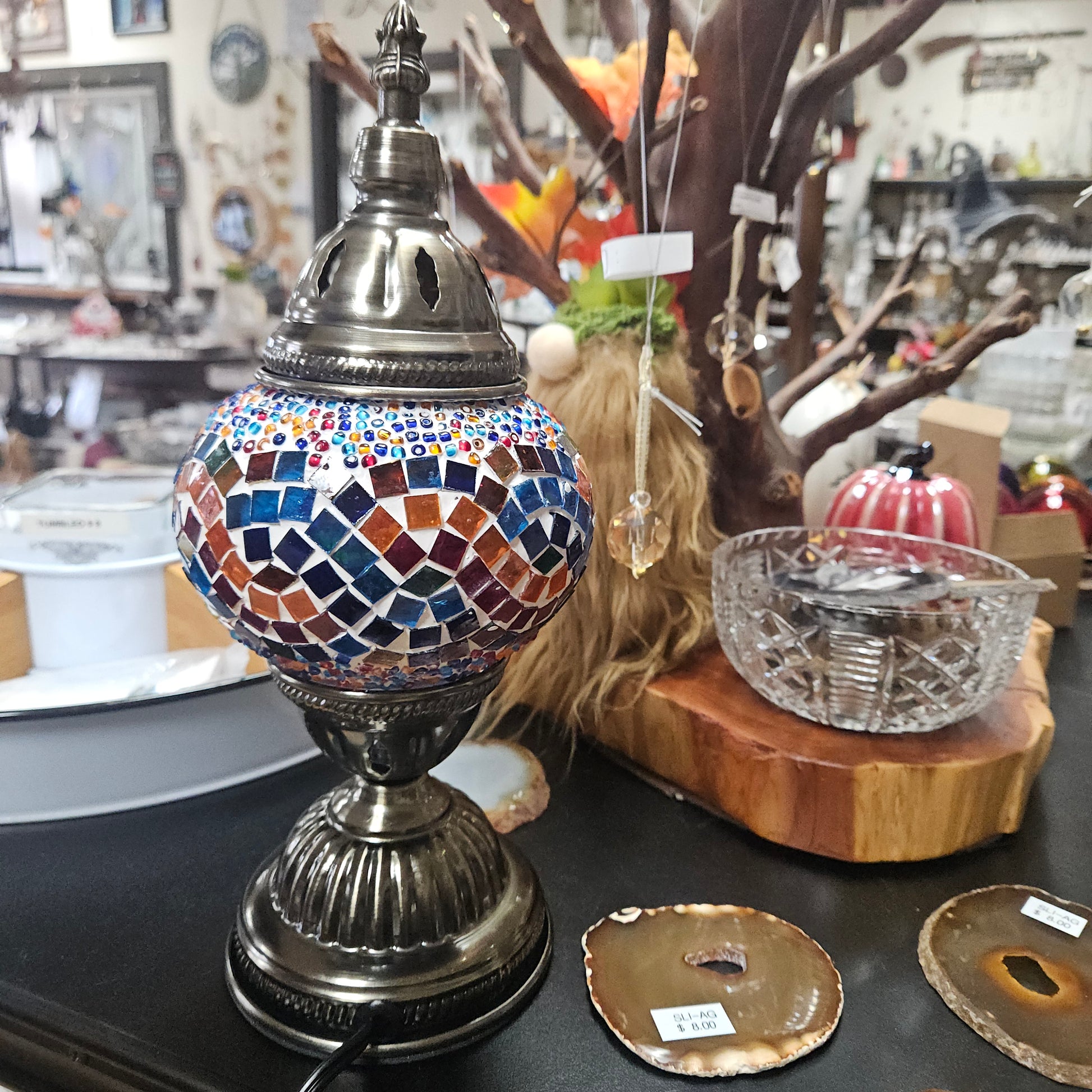 This Turkish style desk lamp is handmade craft which looks high-end and mysterious. Sparkling mosaic glass lampshade is wonderful decoration and beautiful light.