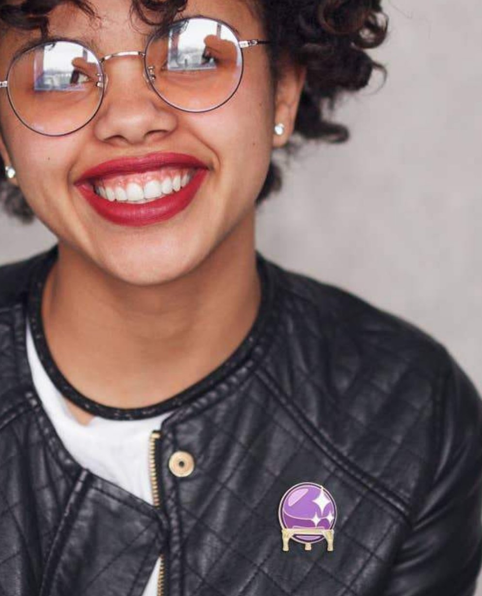Dark times call for dark designs - this crystal ball enamel pin rides the line between occult and kawaii. Help develop your psychic ability or let people know that you have mystic powers. This premium quality pin uses real gold and hard enamel and is a substantial 1.5''. It's the perfect statement piece for a leather jacket or black bookbag. OCCULT MEETS CUTE - Every psychic needs a crystal ball. This pin is a little bit occult and a little bit kawaii REAL GOLD PLATING - Premium quality pin uses real gold plating for a long-lasting, high-quality finish CLASPS INCLUDED - Double-posted to be more secure and includes two metal butterfly clasps. Perfect for a jacket or backpack to stay on without risk of loss or spinning. AMERICAN BRAND - Real Sic is based in Atlanta and sells Unisex fashion accessories for the sickest people on planet earth, our customers