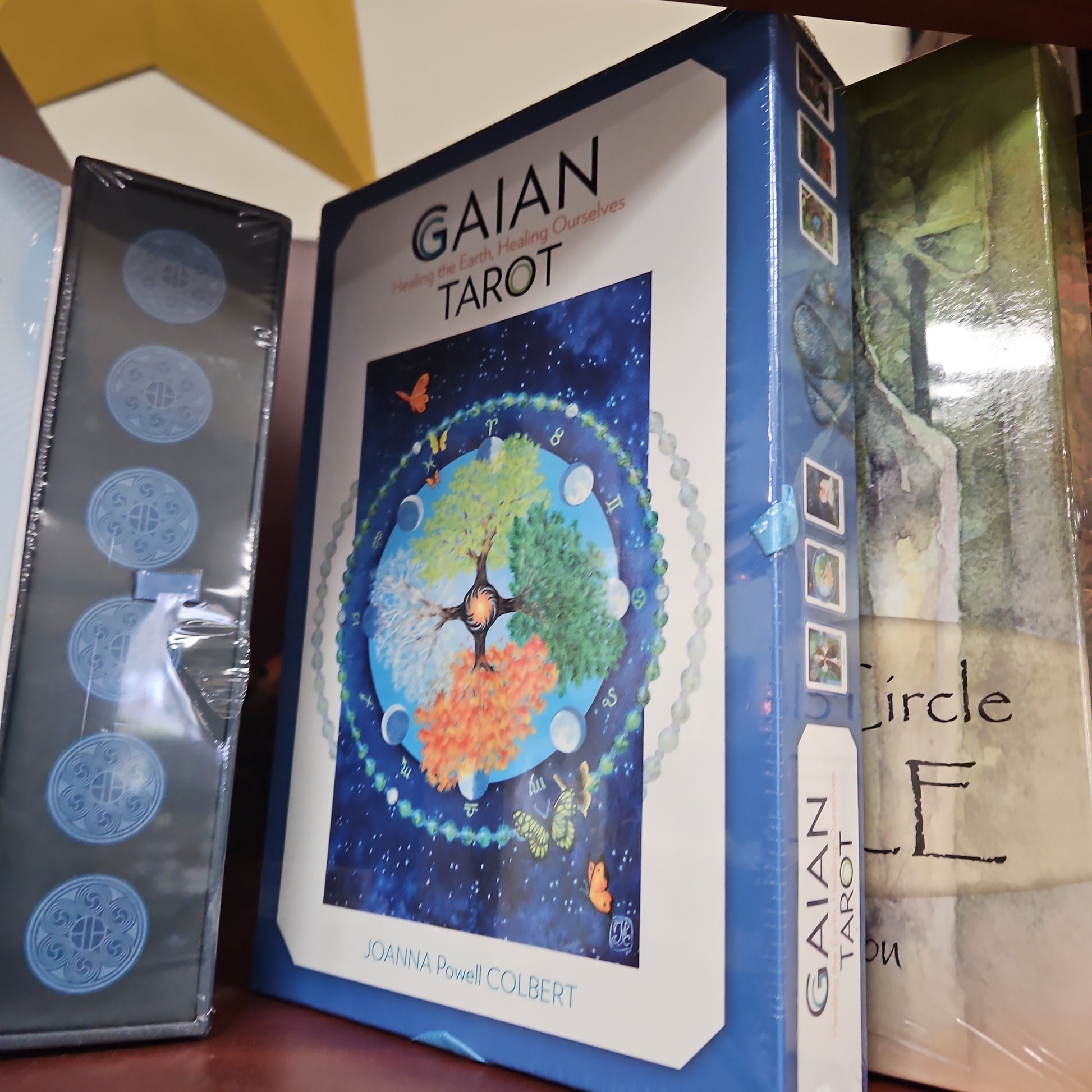 Healing the Earth, Healing Ourselves. Gaia (Mother Nature) is the primal Greek goddess said by ancients to have given birth to the sky, sea, mountains, and all of creation. This beautiful 78-card contemporary and mythical Tarot set with accompanying spiritual guide has a focus on the healing of the earth and of the self. Especially intended for those who practice earth-centered spirituality. Includes cards and book. Size: 6" x 9" x 1 3/4" boxed set. Page count: 184.
