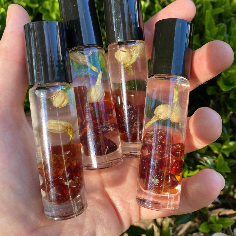 These Good Vibes Prefume Rollers are made witj Crystals, oils and herbs.