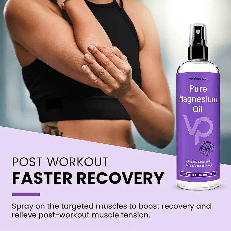 Advanced Formula: Our Venture Pal magnesium oil, infused with lavender, enhances sleep quality and provides a relaxed feeling. It is ideal for post-workout recovery or unwinding physically after a long day, and it also supports overall joint comfort
