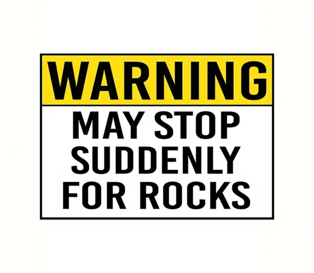 WARNING May Stop Suddenly For Rock Vinyl Car Decal