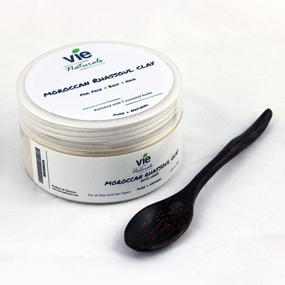 Vie Naturals Moroccan Hammam Rhassoul with a Coconut Spoon