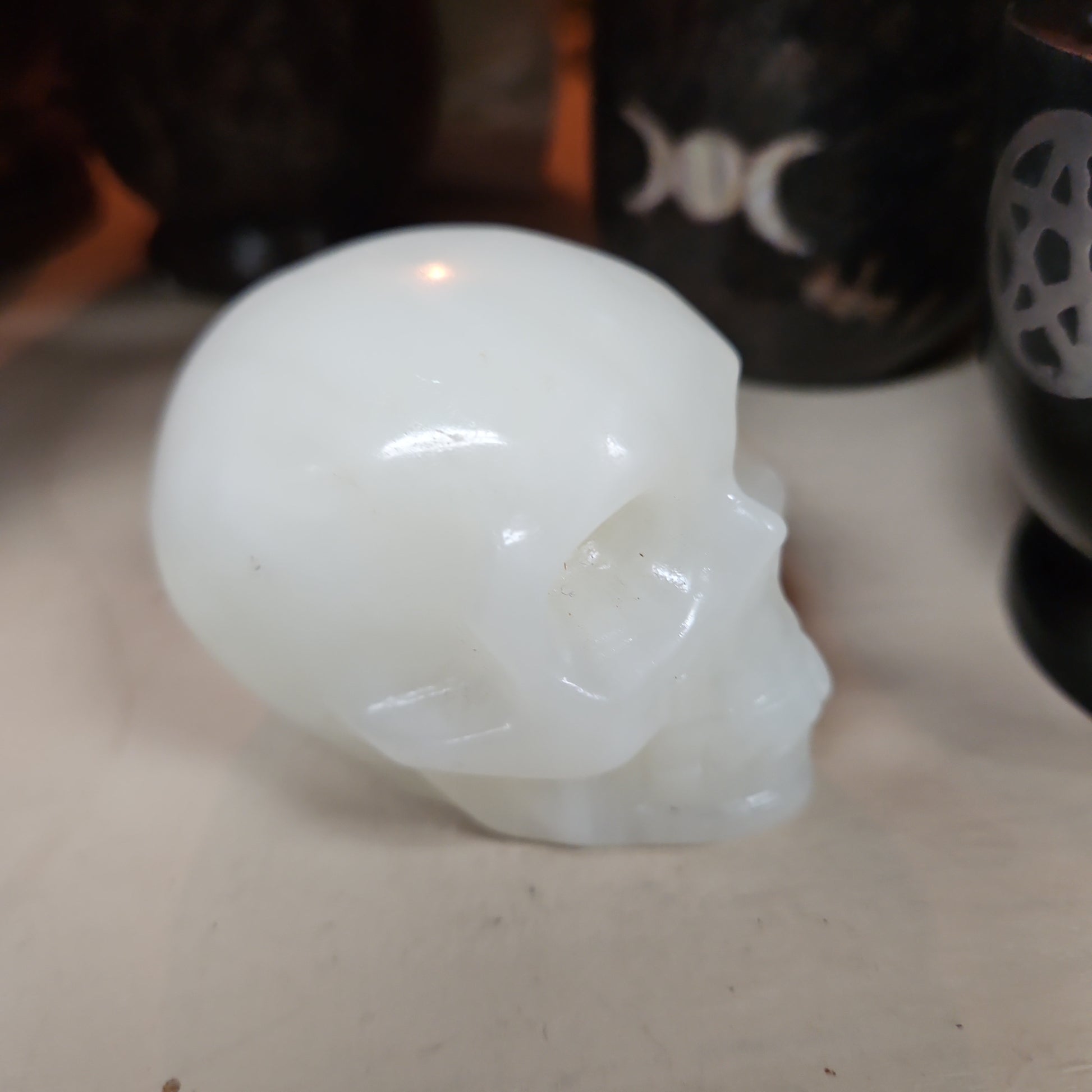 White Banded Agate Skull 2 1/2 by 3”